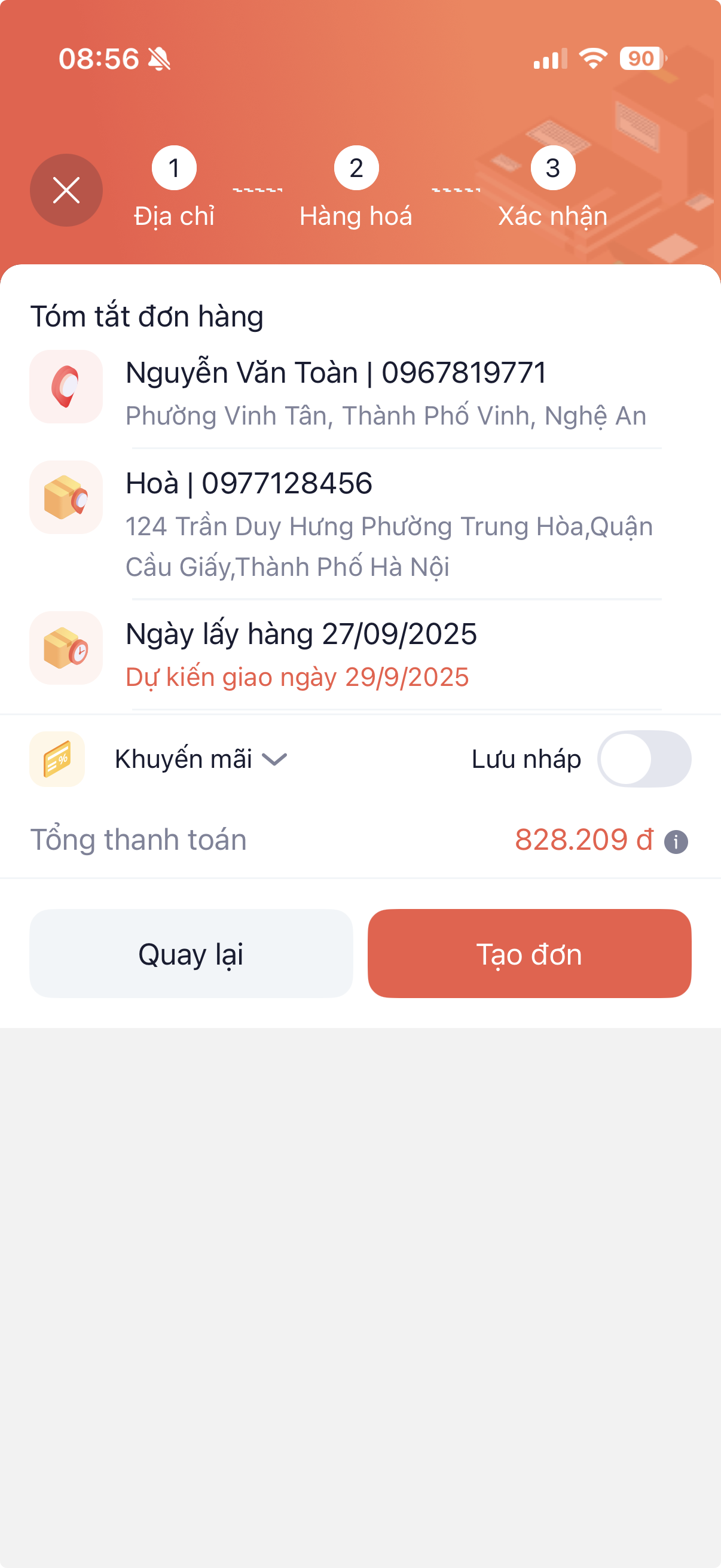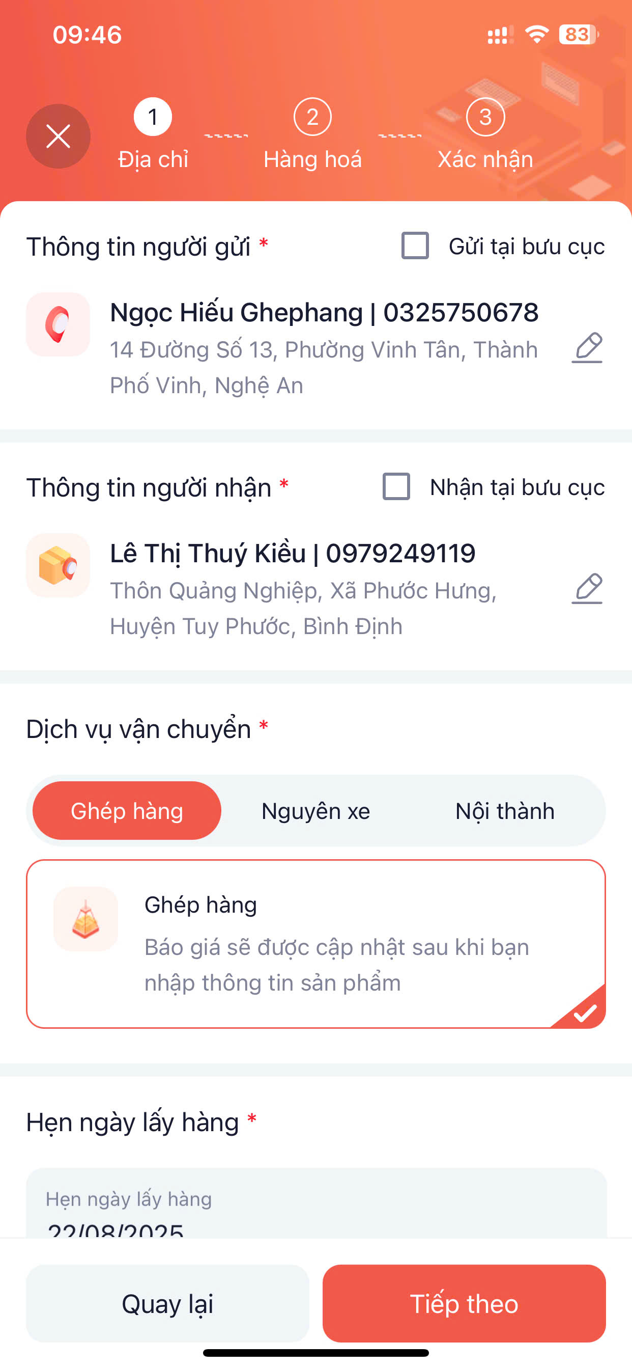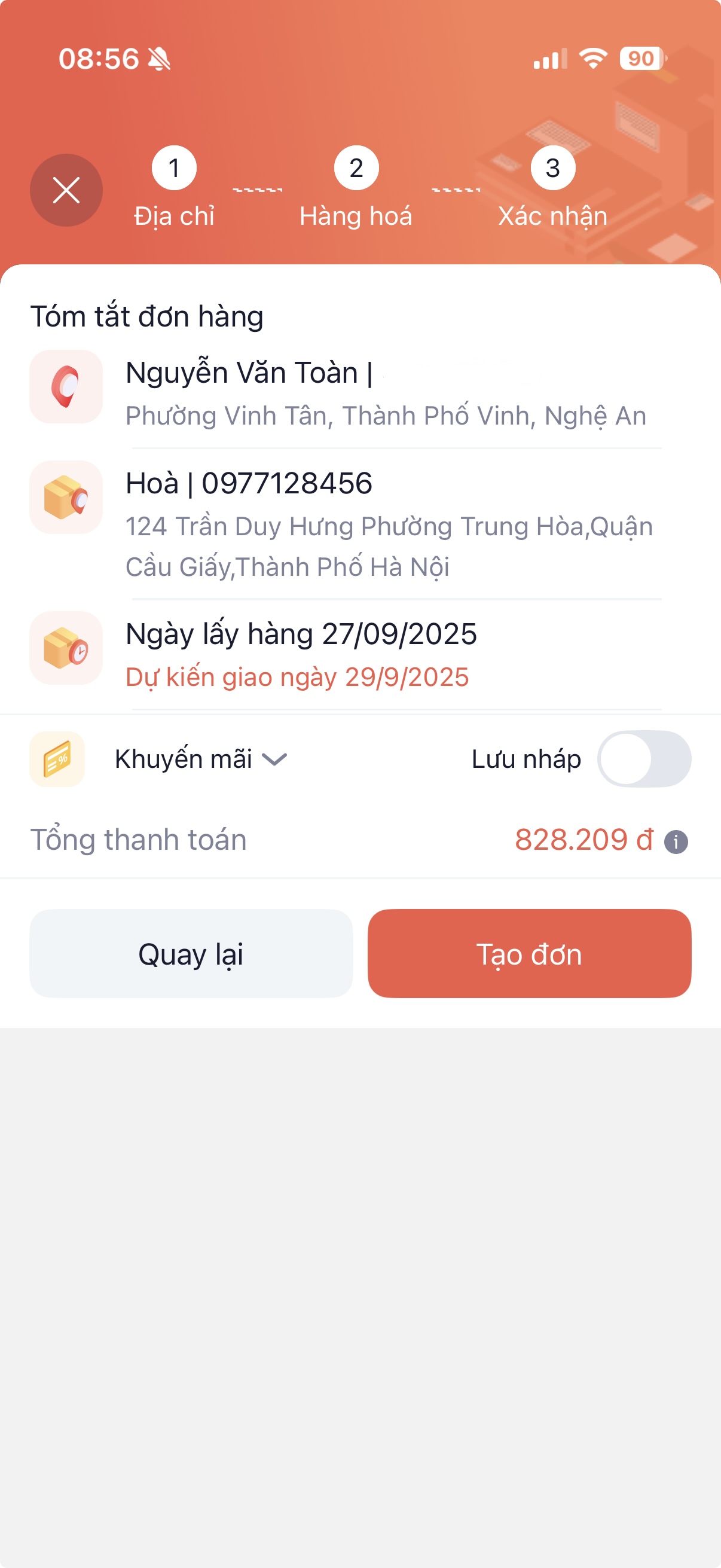 - Nhập thông tin hàng hóa và địa chỉ giao nhận