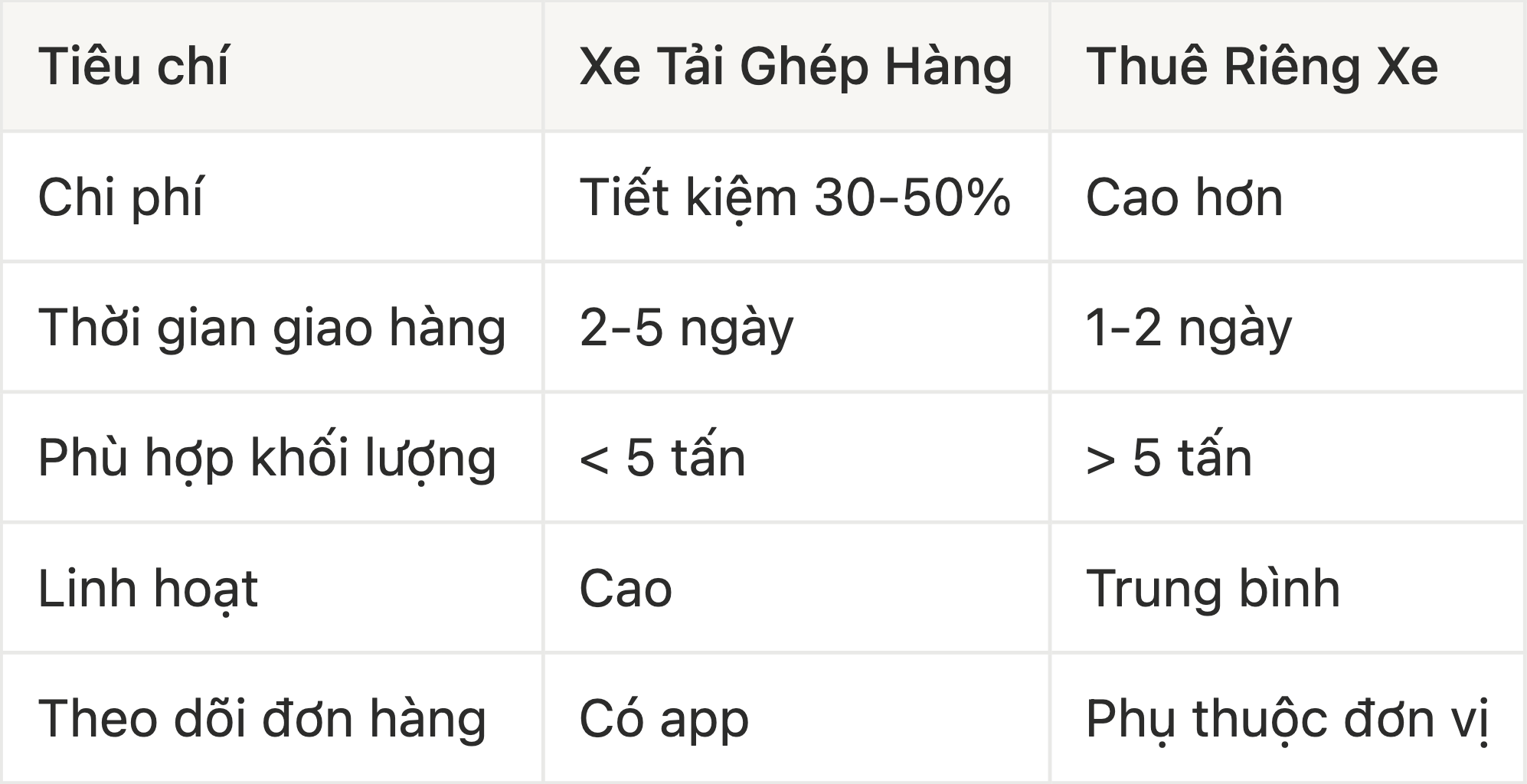 5. So Sánh: Ghép Hàng vs Thuê Riêng Xe Tải